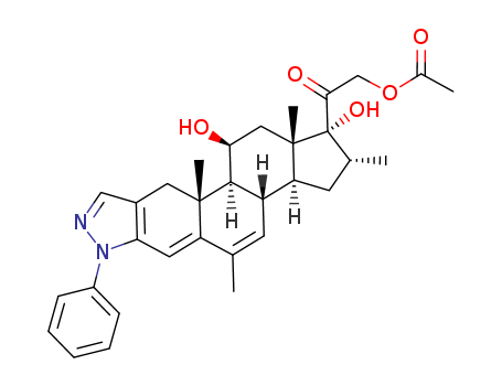 Synonyms?for?cortivazol 1110-40-3:2'H-Pregna-2,4,6-trieno[3,2-c]pyrazol-20-one,11b,17,21-trihydroxy-6,16a-dimethyl-2'-phenyl-, 21-acetate(8CI); Ketone,1,2,3,3a,3b,7,10,10a,10b,11,12,12a-dodecahydro-1,11-dihydroxy-2,5,10a,12a-tetramethyl-7-phenylcyclopenta[7,8]phenanthro[2,3-c]pyrazol-1-ylhydroxymethyl, acetate (7CI); 11b,17a,21-Trihydroxy-6,16a-dimethyl-2'-phenylpregna-2,4,6-trieno[3,2-c]pyrazol-20-one21-acetate; 6,16a-Dimethylpregna-4,6-diene-11b,17a,21-triol-20-one-2'-phenyl-[3,2-c]pyrazole-21-acetate;Altim; Cortivazol; Diaster; Dilaster; H 3625; Idaltim; MK 650; NSC 80998